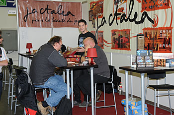 Tiens ça c'est le stand francophone du hall 5, on y retrouvait Plato, Ludocom, Rallyman, le joueur et Ludonaute...