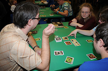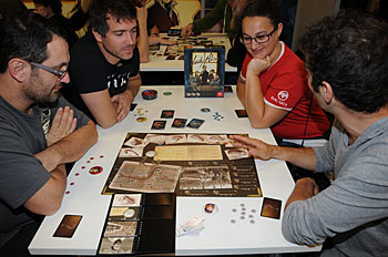 La nouveauté c'est bien sûr Shadows Over Camelot, la version carte des Chevaliers de la Table Ronde, de serge Laget et Bruno Cathala : le jeu propose une mise en place plus rapide et des parties plus courtes. Et si le jeu se déroule dans le même univers, c'est très différent de la version plateau : Shadows Over Camelot est surtout axé mémoire, mais nécessite toujours de bien surveiller ses compagnons de jeu, parce qu'il se pourrait bien qu'un traitre s'y cache...