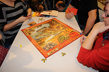 Bon voilà Essen édition 2012 est derrière nous et le retour à la réalité aura été rude cette année : du taf et pas beaucoup de temps pour redescendre de notre nuage ludique. Mais comme les années précédentes nous avons fait "notre" Essen avec les potes : nous avons engrangé les kilomètres, mangé de la bouffe pas diététique, discuté sur la chose ludique et joué bien sûr !