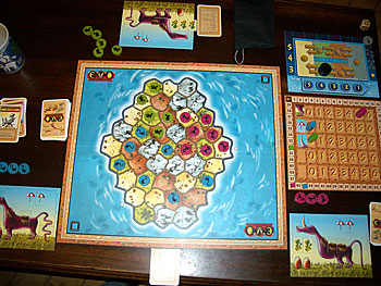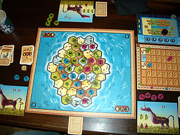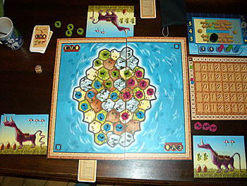 Dés ce second tour le manque de papatte se fait déjà sentir, nous avons déjà du mal à "bouger" nos dinos en zone sûre. Et pour l'instant nous n'avons nos trois dinos chacun...