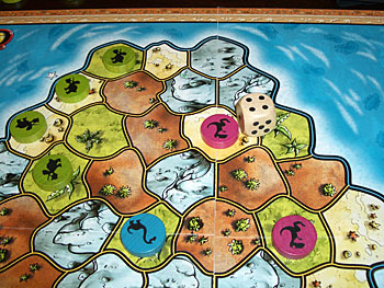 Après un premier déplacement du pion climatique vers les prairies et un premier tour tranquille pour tout le monde, nous nous partagerons les gènes sans qu'il y ait de vraies batailles pour leurs gains...Après tout ce n'est que le premier tour