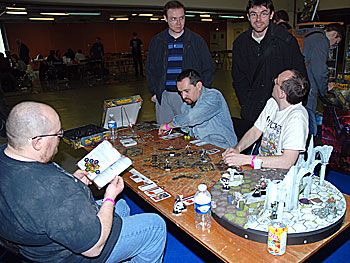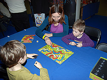 ...où l'on trouvera un grand nombre de tables dédiées à la nouveauté toute fraîche sortie pour la Gencon : Senji de Bruno Cathala et Serge Laget, et sous la demande pressante des joueurs qui seront très nombreux à se presser sur le stand pour le tester, le nombre de tables dédiées à Senji ne cessera d'augmenter tout au long du WE.