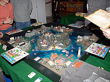 Chez Days of Wonders, l'actualité c'est la sortie des "Aventuriers du Rail" version carte. On y trouvait donc logiquement plusieurs tables dédiées.