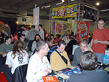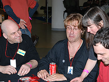 c'est Sylvie Barc (l'auteur) qui va lui expliquer le principe du jeu. On remarque sur la photo de droite que Chris écoute très attentivement .