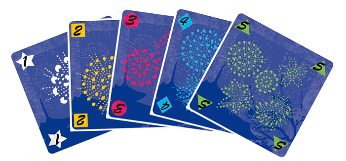 Chaque feu d'artifice ne peut comporter qu'une seule carte de chaque valeur. Il contient donc 5 cartes lorsqu'il est reconstitué.