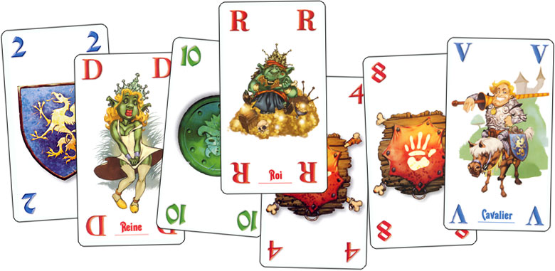 Le Roi des Nains est un jeu de plis de la veine d'un jeu du Barbu, mais ici point de jeu classique de 52 cartes, les cartes sont réparties 3 couleurs de 13 cartes chacune : les Nains (bien sûr !), les Chevaliers et Les Gobelins. Ainsi on se retrouvera à jouer un Shaman Gobelin, un Cavalier Nain ou encore un Enchanteur...