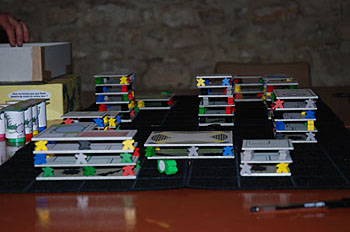 Des meeples (nombreux les meeples ^^) qui soutiennent des plaques formant des immeubles...ça c'est Rampage....