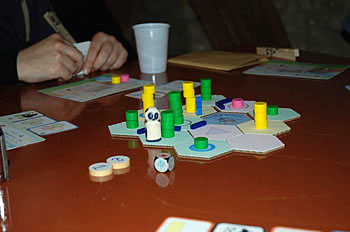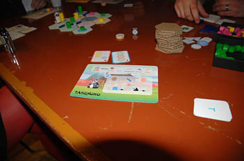 Dans le même temps, une partie de Takenoko est en cours sur la table d'à côté, bon là c'est le proto hein, la version définitive sera bien plus jolie...
