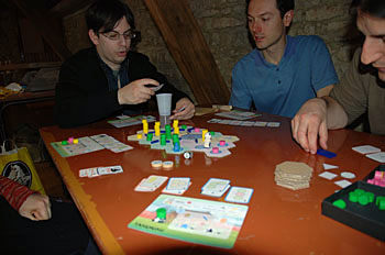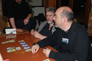 Alain qui teste TrollLand en compagnie de Bruno Cathala...