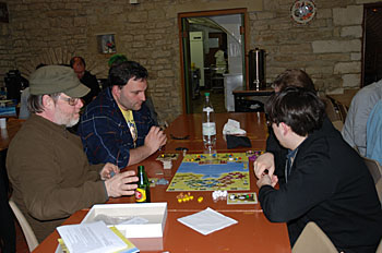 La fine équipe constituée de Fanou, Marco, Jef et Ludo s'affronte sur Egizia...le gros buz de ces Ludopathiques (Bah oui, c'est comme à Essen ça buz à Etourvy aussi ).