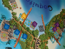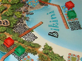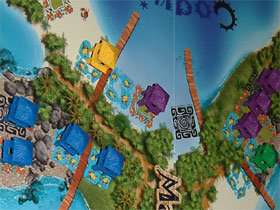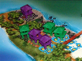 Bon, une petite révision des règles du jeu plus tard (seul BoLFaB ne connaissait pas le jeu) et nous voilà partis dans nos constructions de paillotes...