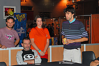 Sur le stand de Cocktail Games, un concours était organisé pour gagner des planches inédites de Kaleidos, ce qui donnait des parties où les joueurs étaient très concentrés