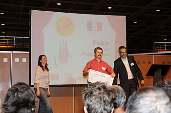 Le dimanche après-midi, la cérémonie de remise des prix du concours de créateurs de Boulogne Billancourt s'est déroulée sur l'espace forum du Monde du Jeu. Les 10 finalistes ont été présentés puis les 4 primés ont été dévoilés. Le premier à recevoir le prix cette année était Philippe Proux pour Fakir, suivi de Bernhard Klauï et son Bago...