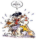 Le Mangeur : En mangeant sur le lieu de travail, il aide à récupérer l'énergie dépensée. Mais attention ! Il est formellement interdit de manger pendant la construction du chêne vert sacré, et l'homme-Massue veille au grain...