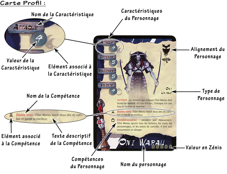 Composition de la bande : Les personnages ont tous une valeur exprimée en Zénis (la monnaie en vigueur) sur leur carte Profil, chaque joueur disposera de 16 Zénis pour composer sa bande (12 pour une partie d'initiation) et acheter de l'équipement. Certains des scénarios fournis imposeront les forces en présence, surtout lors des premières parties.