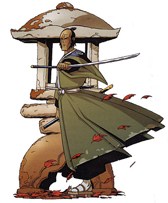 Okko est un personnage charismatique, malgré son statut de samouraï déchu, qui traque les démons et autres créatures maléfiques ou occultes qui arpentent l'empire du Pajan. Il est accompagné dans sa quête par Naburo, un colosse redoutable au combat dont les origines sont douteuses, du moine Noshin, aussi sage qu'alcoolique, ainsi que de Tikku un jeune apprenti.