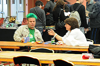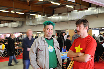 Tout au long du WE, on pouvait rencontrer Friedemann Friese, l'homme au cheveux verts, soit au détour d'une coursive...