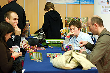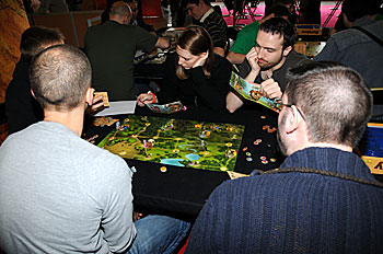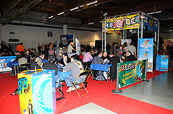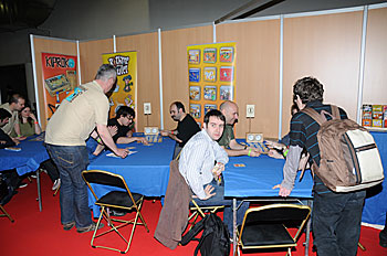 Le samedi après midi se déroulait le concours Trader, L'Ystari Team composée de Cyril Demaegd (ici à droite sur la photo) associé à William Attia atteindra la finale où elle sera battue par l'Asmodée Team (Gaubil/Nunes).