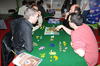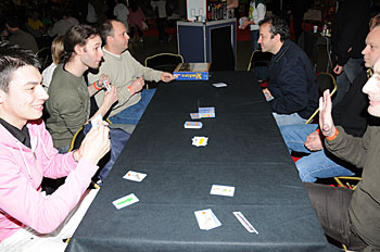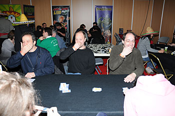 Pendant ce temps, sur le stand Repos Prod, de joueurs font des tas de trucs bizarres : Une partie de You Robot est en cours dirigée par Alain Rivollet.