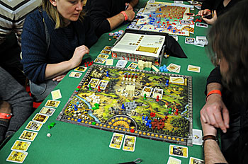 Toujours dans la catégorie protos, sur ce coin de table c'est une partie de Dungeon Twister 2 qui est en cours.