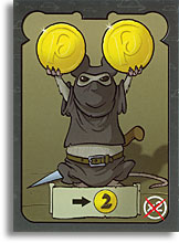 Les Gardes : Si la tuile retournée est un premier garde, il est placé sur l'une des deux portes du plateau : il bloque cette sortie et sa valeur s'ajoute au butin du joueur qui sort volontairement de l'auberge. S'il s'agit d'un second garde (un premier garde bloque déjà la première sortie), la nuit s'arrête : les joueurs encore présents dans l'auberge sont mis dehors sans butin et donc sans marquer aucun point.