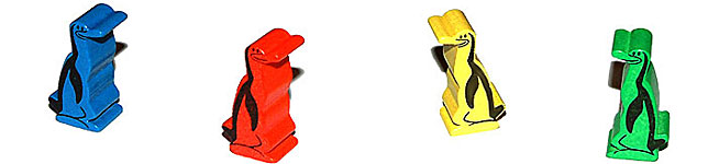 Chaque joueur choisit sa couleur et se saisit d'une quantité de Pingouins variable selon le nombre de joueurs (2 pingouins à 4 joueurs, 3 pingouins à 3 joueurs et 4 pingouins à 2 joueurs).