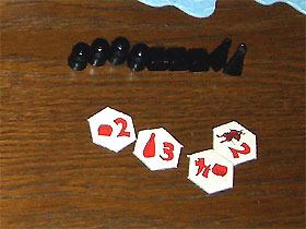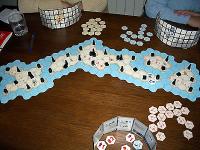 La mise en forme effectuée, chacun pioche de sa réserve personnelle ses 5 tuiles de départ, la partie peut commencer.
