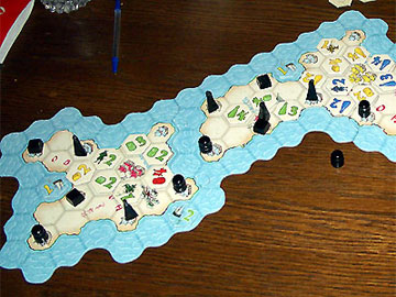 L'espace libre étant encore important en ce début de partie chacun fait ses placements dans son coin.