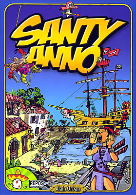 Voilà un jeu pour le moins original et rafraîchissant ! Basé sur la qualité d'observation et la rapidité d'execution, Santy Anno exploite le thème classique de la piraterie où chaque joueur convoite le titre très prisé de capitaine. Néanmoins le principe pour y parvenir est lui moins habituel : il faudra déduire sa destination à l'aide de cartes mouvement et courir (réellement !) autour de la table pour rejoindre son bateau. Et comme tous les joueurs jouent en même temps avec les même cartes mouvement, on ressent en permanence une impression d'urgence, il faut trouver le bon bateau, oui, mais si possible avant les autres joueurs...