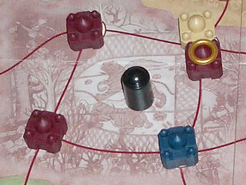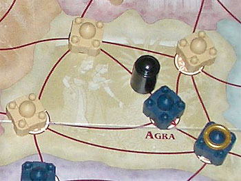 Reste à placer la couronne et les 4 pions d'influence (vizir, princesse, général, moine) dans la cour du grand moghol et nous pouvons débuter la partie.