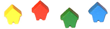 Chaque joueur choisit une couleur et prend la carte "maison mère" ainsi que les 20 maisons en bois correspondantes.