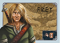 Lors d'une recherche de Vikings en Midgard, Frigg pioche 3 jetons, garde les Vikings et peut rejeter un (et un seul) Géant de Feu sur le Royaume du Feu (si elle en pioche au moins un).
